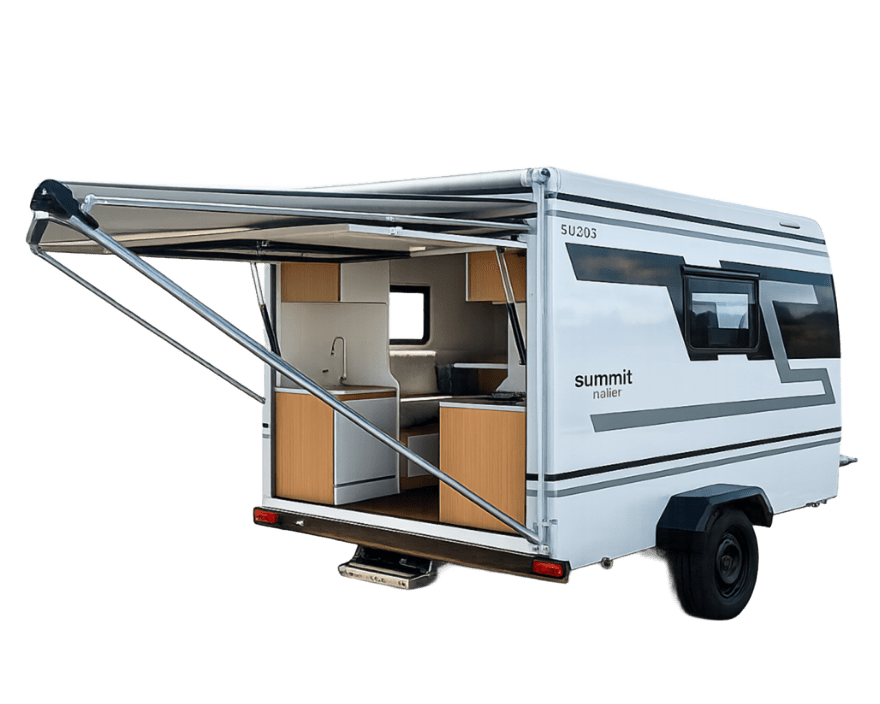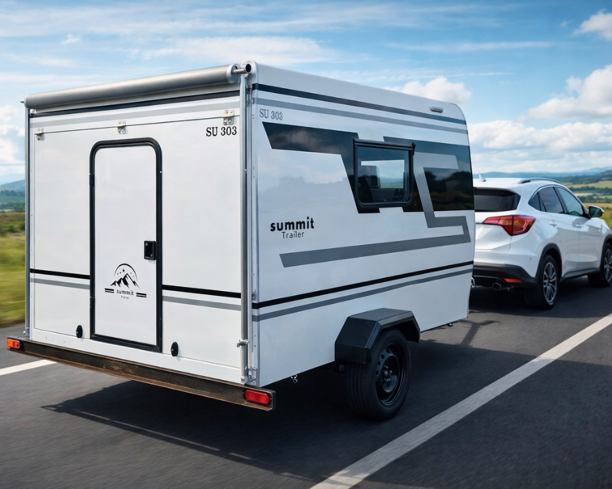 O SU 303 Mini é o menor modelo da linha Summit — fácil de rebocar, cabe em vagas de garagem e pode ser puxado por carros pequenos.